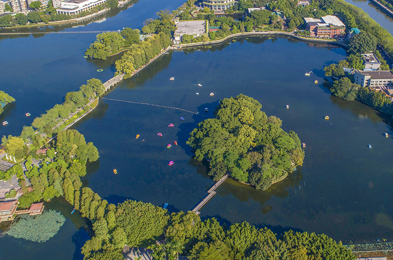 东山湖公园建成于1959年,水域面积约33.5万m2,是广州市四大生态调蓄湖之一,毗邻广东省委大院和珠岛宾馆。东山湖作为半开放水体,需要承担周边水系蓄洪的责任,生态系统一度崩溃,水质沦为劣V类。