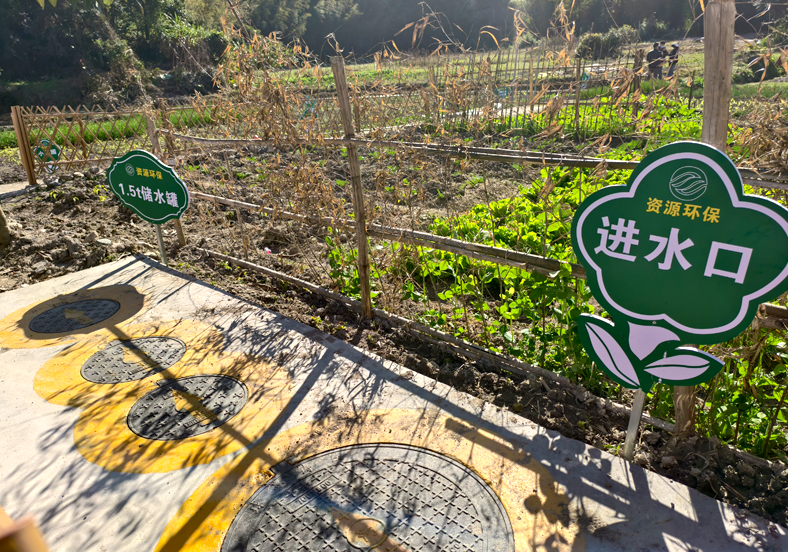 根据村庄地势高低起伏的特点,进行细化的分区资源化模式建设。同时利用肥水储水池和简易浇灌工具等配套设施,将村庄内“四小园”作为受纳体,实现庭院、农业生产、景观生态等资源化利用,破解农村生活污水处理难题。